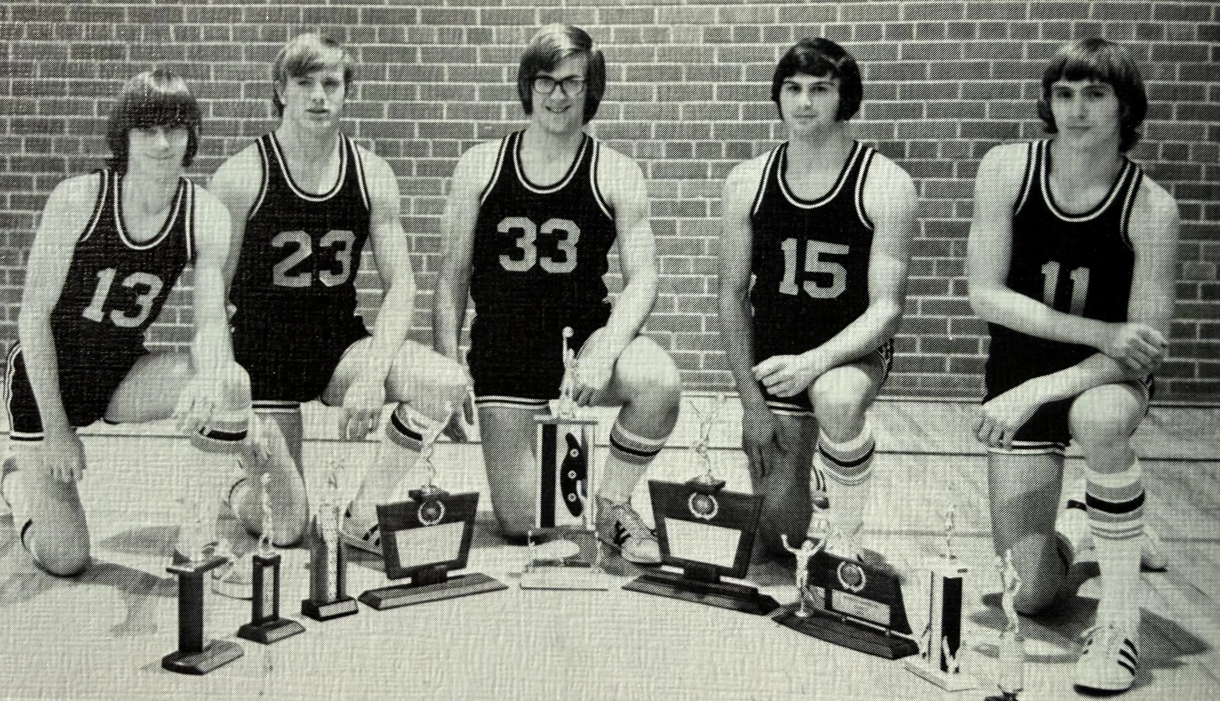 School secretary Barb DeRiese distributed the school bulletin every morning. Teachers read the day’s news to their classes, noting the time the school buses were supposed to leave for Guide Rock, informing the pep band members of the emergency practice session over the noon hour, nagging teachers about the down slips due in the office by this afternoon, no later than 4 p.m.