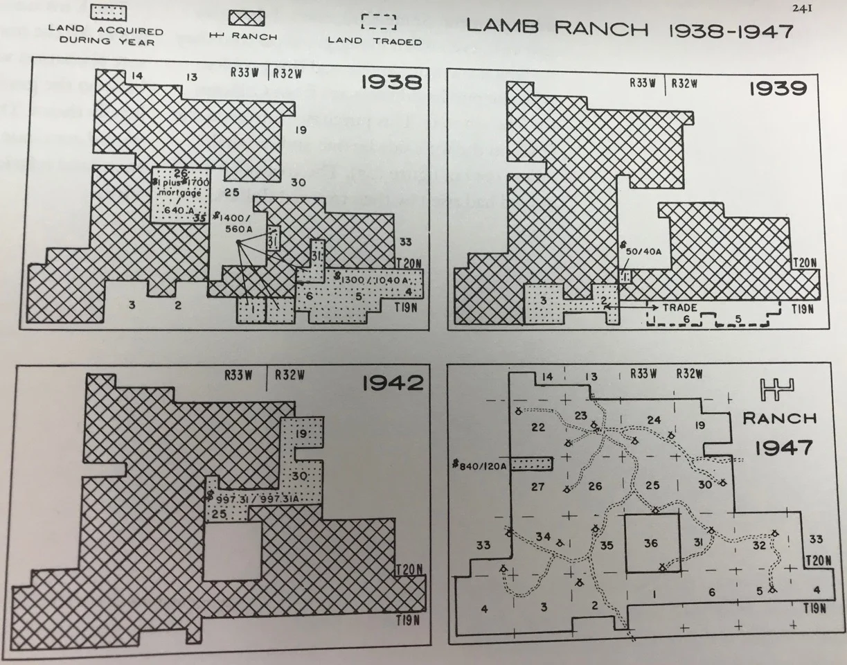 C. B. McIntosh's land patent map showing the expansion of the Lamb Ranch